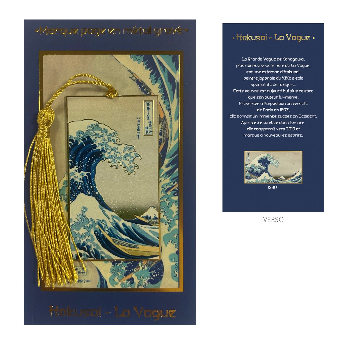 Μεταλλικός Σελιδοδείκτης Με Εκτυπωμένη Κάρτα “Vague” Hokusai 7,5×14 cm